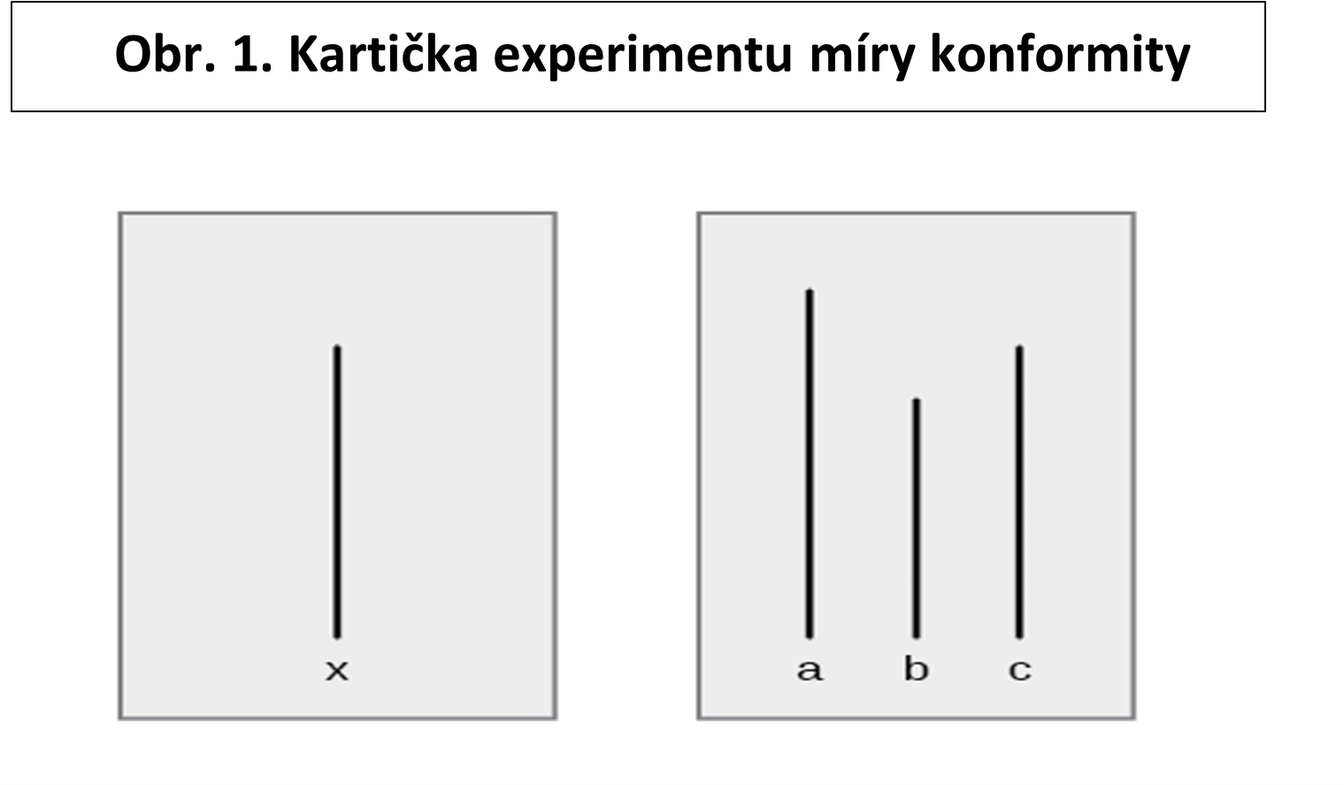 Sociální psycholog Solomon Asch v roce 1951 uspořádal řadu experimentů, aby zjistil míru konformity v lidské společnosti. Konformita je přizpůsobení se jednotlivce převažujícím či dominantním názorům, požadavkům, normám skupiny či společnosti, v níž člověk žije, a potlačení projevů vlastních názorů, postojů a hodnot. Experiment spočíval v tom, že Asch vyzval studenty, aby porovnávali délku čar na sérii kartiček. Uvedl to jako test zraku, ale ve skutečnosti šlo o test posuzující konformitu. Účastníci experimentu měli před sebou vždy jednu čáru jako „etalon“ a podle etalonu měli určovat délku dalších tří čar. Svůj úsudek poté postupně vyslovovali nahlas před ostatními účastníky experimentu. Kouzlo experimentu spočívalo v tom, že většina testovaných osob byla instruována, aby odpovídala nesprávně. Osoba testovaná na konformitu pak odpovídala jako poslední. Test měřil, do jaké míry bude testovaná osoba odpovídat podle svého přesvědčení o délce čáry a nakolik podlehne úmyslně nesprávným odpovědím svých předchůdců. Výsledky experimentu ukázaly, že lidé podléhají názorovému nátlaku většiny.