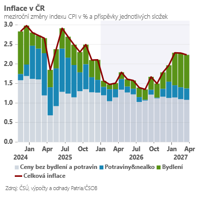 V lednové inflaci půjde o dvě věci - jak výrazně nakonec poklesne celková inflace pod hranici 2 % a zda v segmentu služeb zůstane zvýšené inflační momentum (aktuálně lehce přes 5 %). Celková inflace může pod tlakem zejména nižších cen elektrické energie a některých potravin poklesnout ještě o něco výrazněji, než předpokládá trh (náš odhad 1,5 % versus tržních 1,6 %). Ceny služeb (tradičně v lednu přeceňovaných) však dál porostou velmi svižně - ať už se jedná o pohostinství, hoteliérství nebo nájmy (předpokládáme, že se momentum udrží v blízkosti 5 %). V takovém případě by ČNB měla zůstat dál “obezřetná” a výrazný pokles inflace v roce 2026 “ignorovat” jako čistě dočasný fenomén.